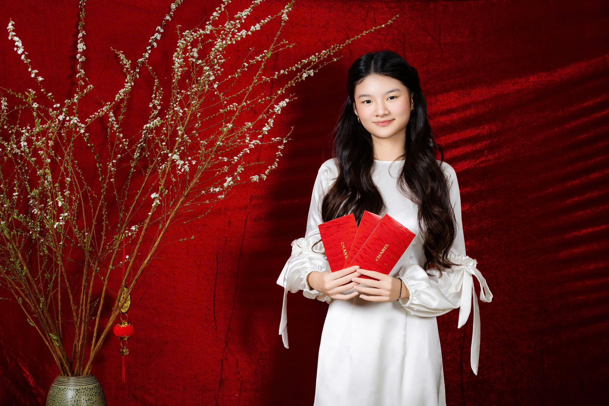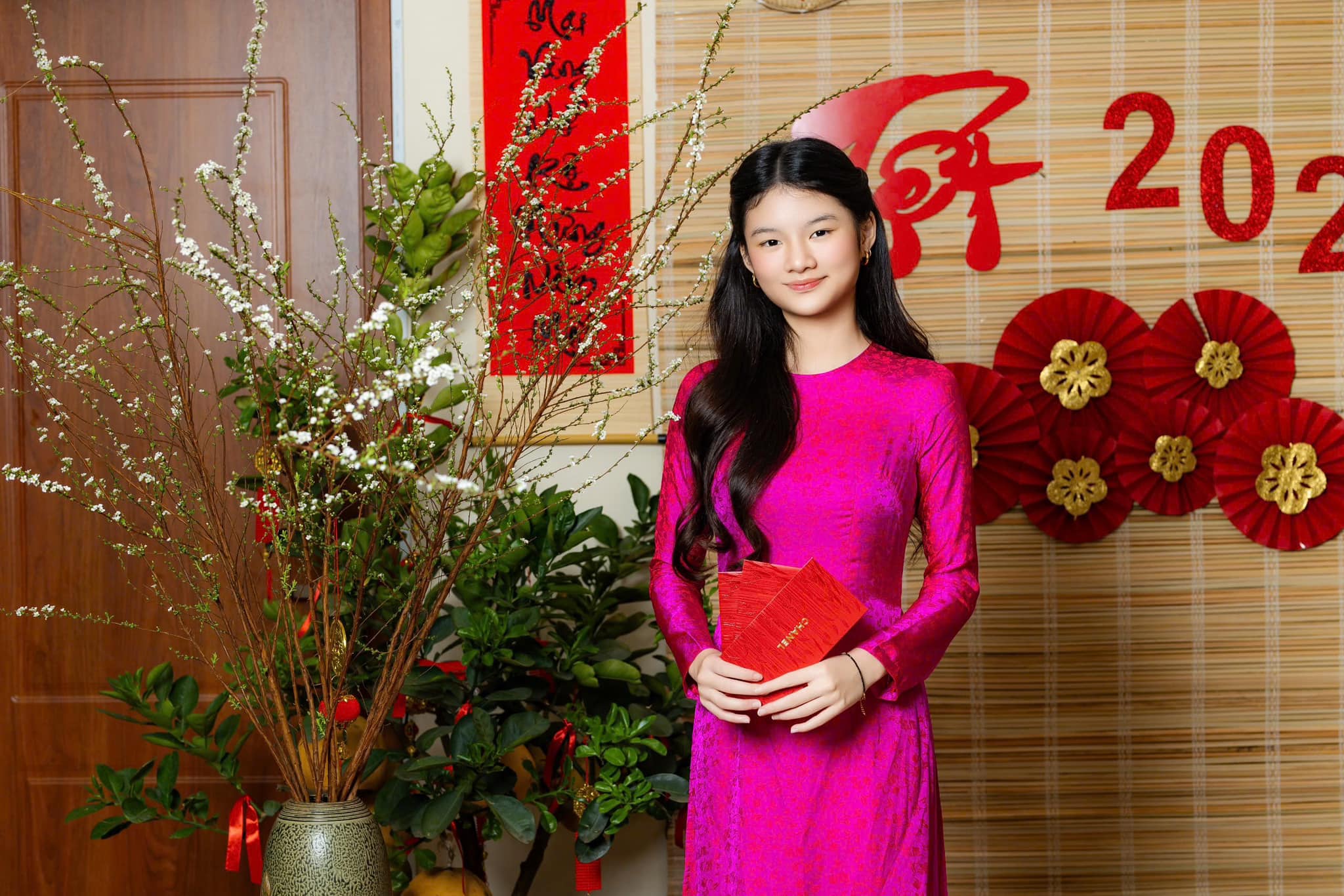 Bộ ảnh hiếm hoi của Bảo Tiên – con gái của cặp đôi diễn viên điện ảnh Trương Ngọc Ánh – Trần Bảo Sơn trong tà áo dài xuân bên mẹ cùng bà ngoại và cậu nhân dịp năm mới 2025.