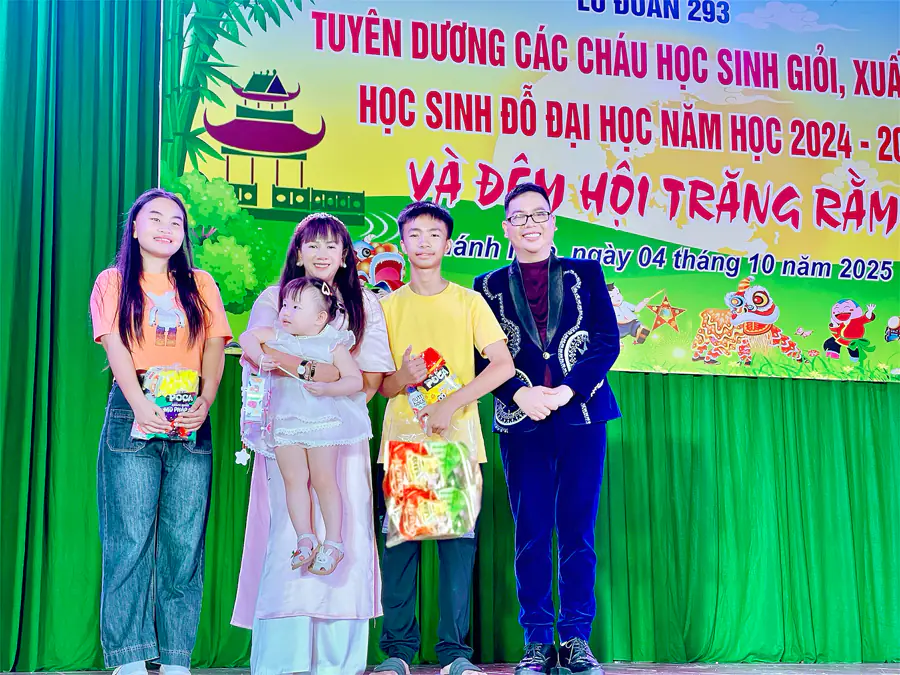 Trong đêm trăng rằm ấm áp đầu tháng 10, sân đơn vị Lữ đoàn 293 – Binh chủng Công binh bừng sáng bởi tiếng trống lân, nụ cười trẻ thơ và ánh đèn lung linh. “Đêm hội Trăng Rằm” năm nay mang một dấu ấn đặc biệt, khi có sự đồng hành của doanh nhân Anna Yến Phượng cùng nhạc sĩ Holy Thắng và đoàn doanh nhân đại diện từ TP. Hồ Chí Minh.