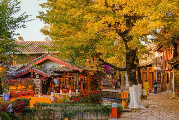 Kết thúc hành trình, Lệ Giang chào đón du khách bằng vẻ đẹp cổ kính và lãng mạn. Những con phố lát đá, dòng suối nhỏ len lỏi qua nhà cổ, xa xa là dãy núi Tuyết Ngọc Long sừng sững. Mùa thu nơi đây không chỉ đẹp bởi cảnh sắc mà còn bởi văn hóa đặc trưng của người Nạp Tây, đem lại cảm giác yên bình hiếm có.